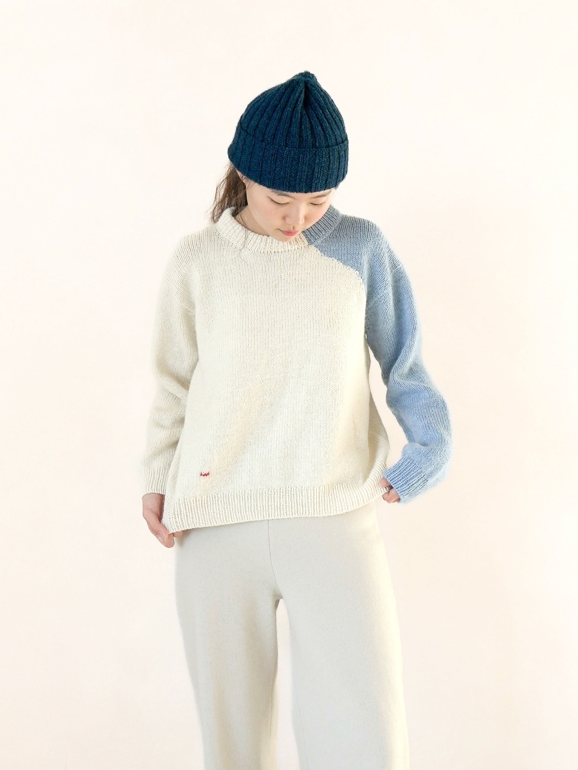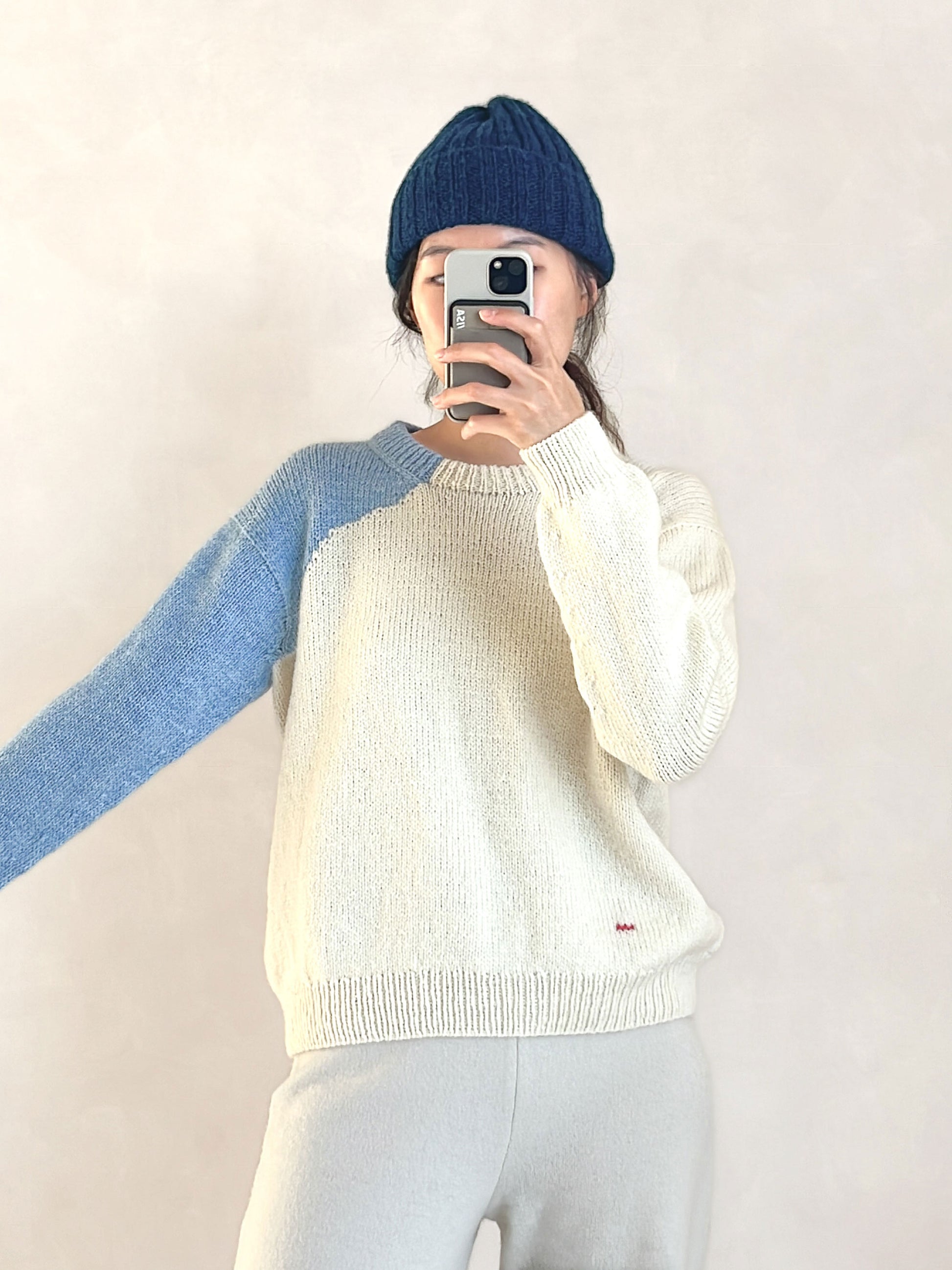 아이슬란드의 빙하에서 영감을 받은 배색 스웨터입니다. 인따르시아 기법을 이용해 넓지 않은 구간을 배색하기 때문에 페어아일보다 실이 적게들면서도, 어렵지 않고 재미있게 배색을 즐겨보실 수 있습니다. 되돌아뜨기와 코줄임을 통해 소매산이 생기는 탑다운 방식이기 때문에 어깨와 팔이 이어지는 부분의 핏이 예쁘게 떨어집니다. 부분 부분 어려울 수 있는 기법만 동영상이 제공되며, 전체동영상은 없는 서술형 + 기호 도안입니다.