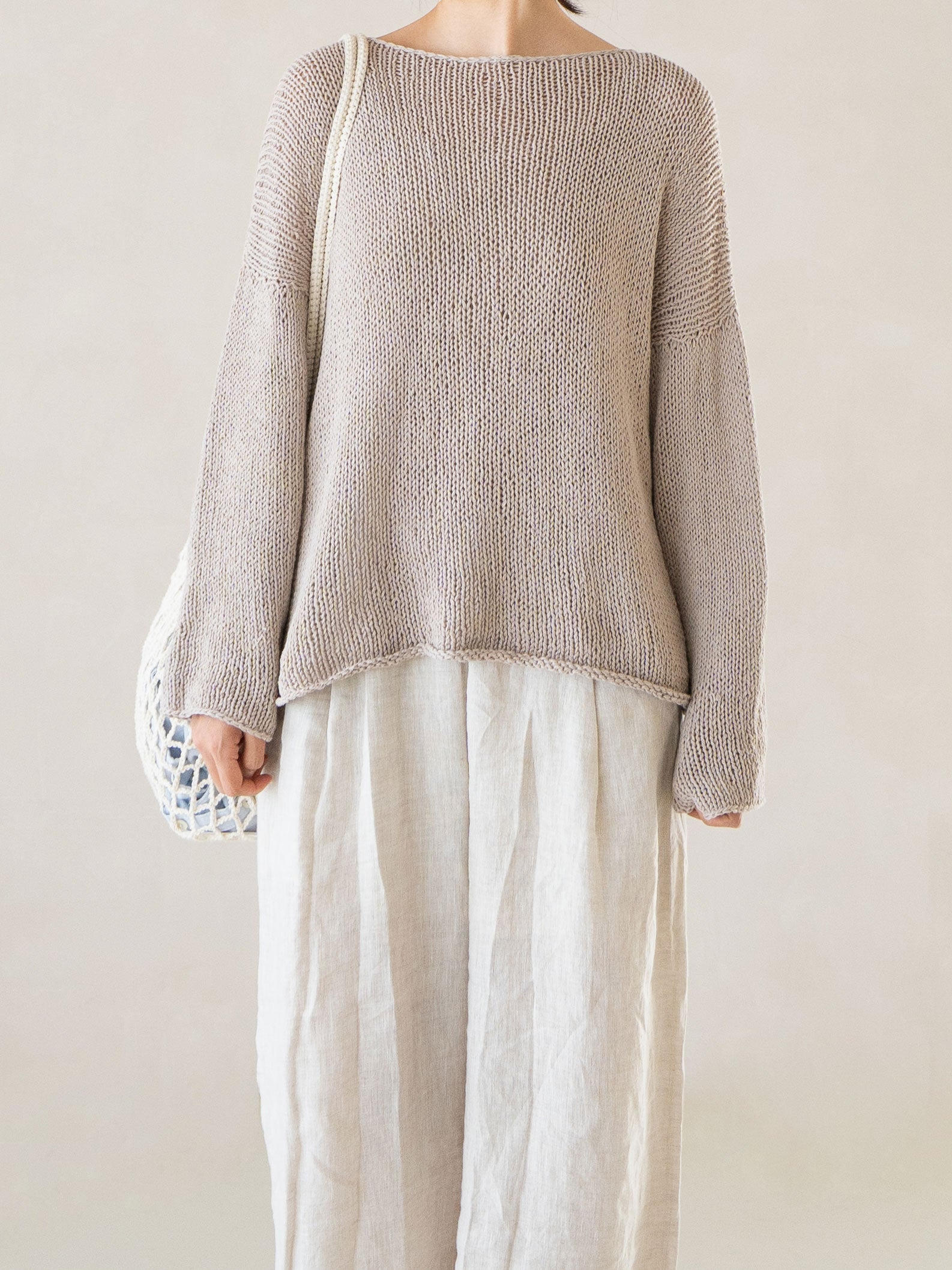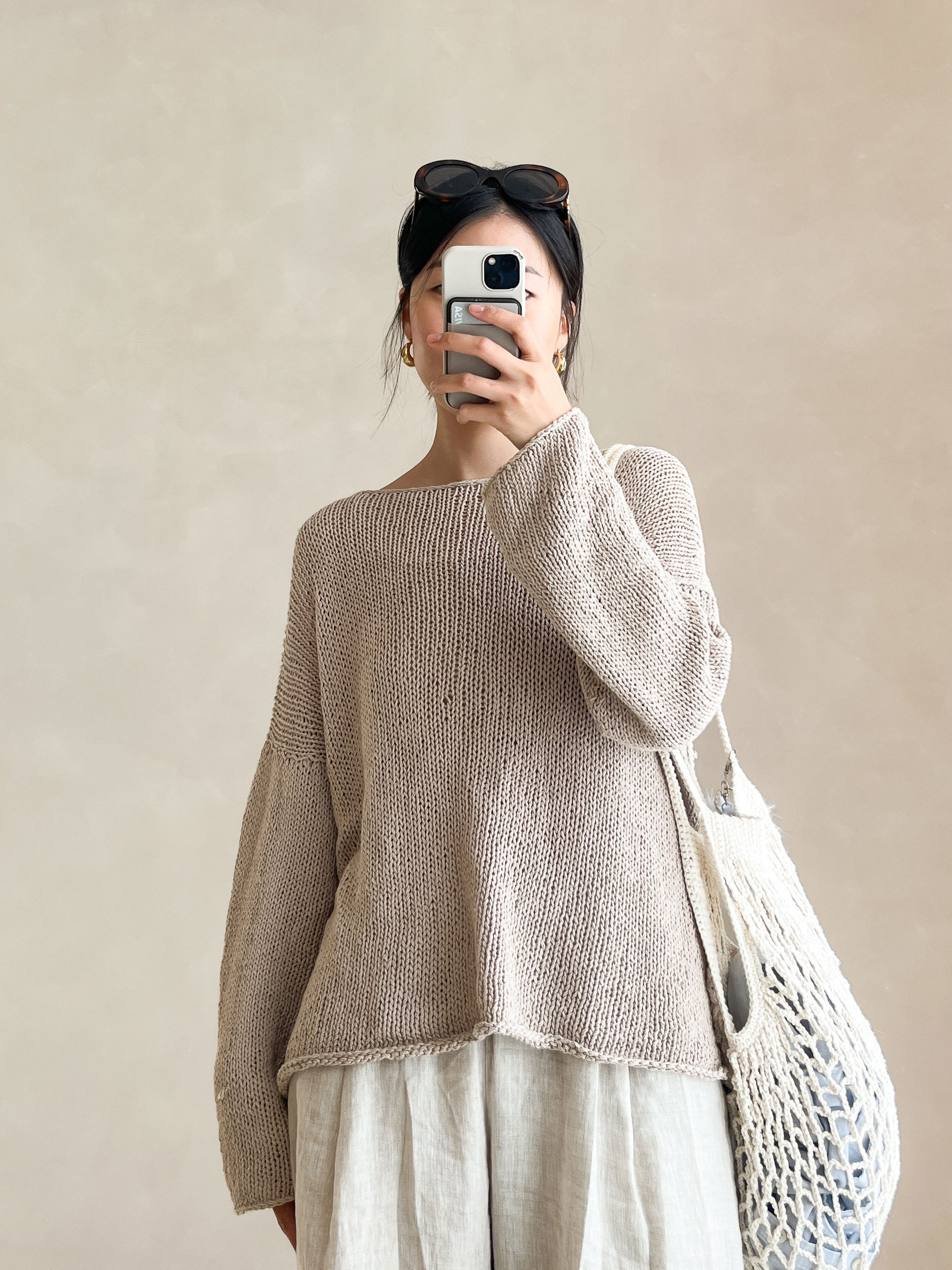 굵은 대바늘로 성글게 뜨는 가볍고 시원한 착용감이 특징인 탑다운 니트입니다. 이름 그대로 그물처럼 숭덩숭덩 뜨는 짜임이 시원한 인상을 주며, 여름철에 걸쳐 입기 좋은 아이템입니다. 초보자도 도전할 수 있도록 전 과정을 담은 동영상이 함께 제공됩니다. 린넨과 비스코스가 혼방된 실을 사용해 자연스러운 텍스처와 드레이프가 살아 있고, 수영복 위에 가볍게 걸치거나 슬리브리스와 레이어드해도 멋스럽습니다. 탑다운으로 뜨기 때문에 길이 조절도 자유로워, 원하는 스타일로 완성할 수 있습니다.