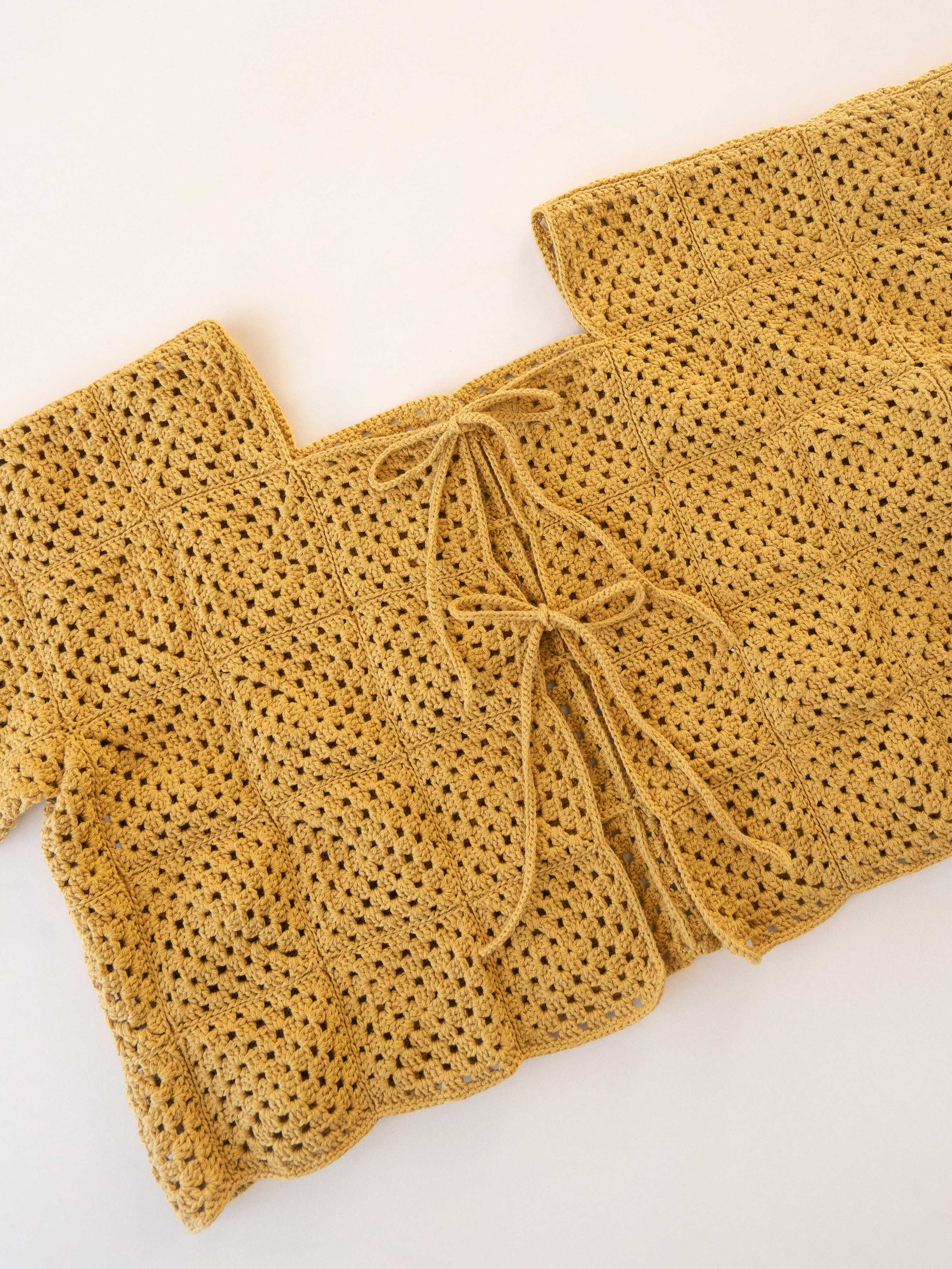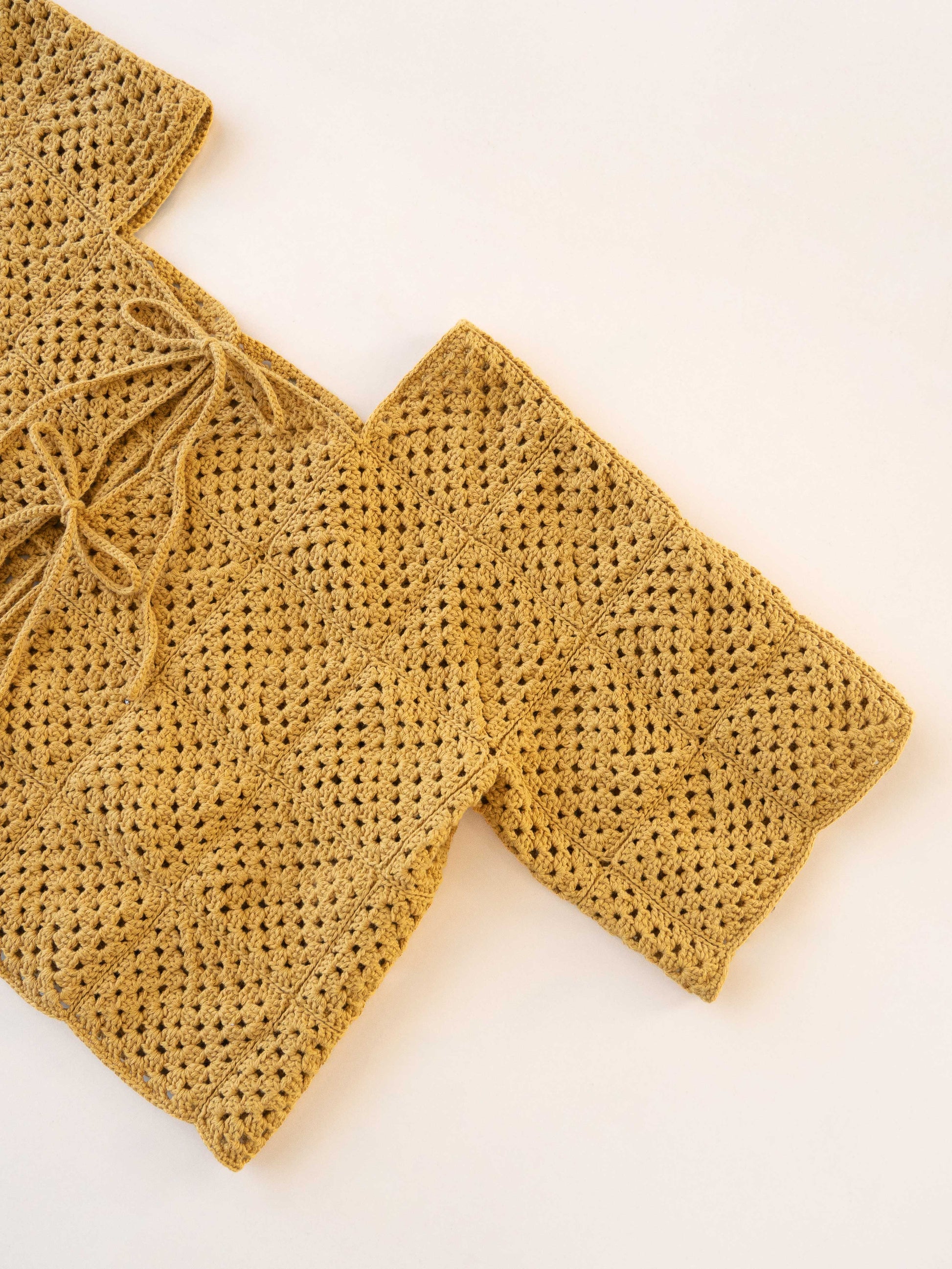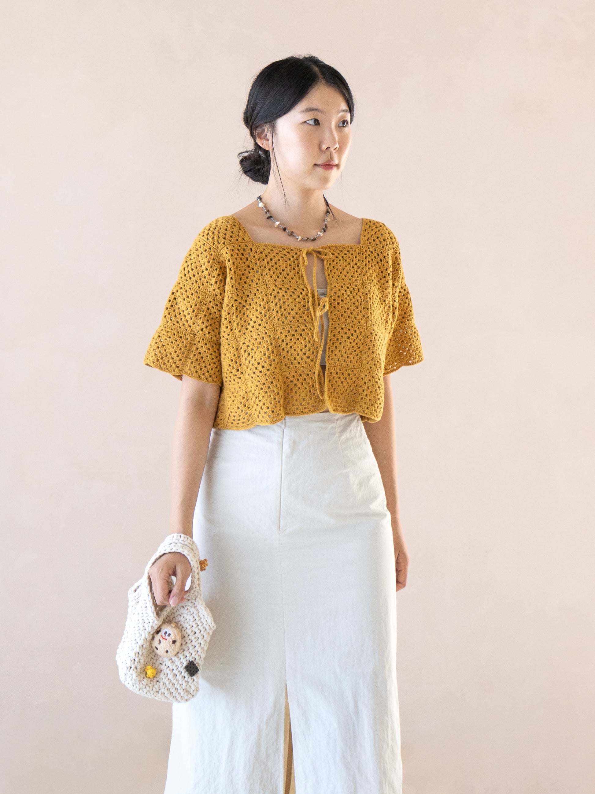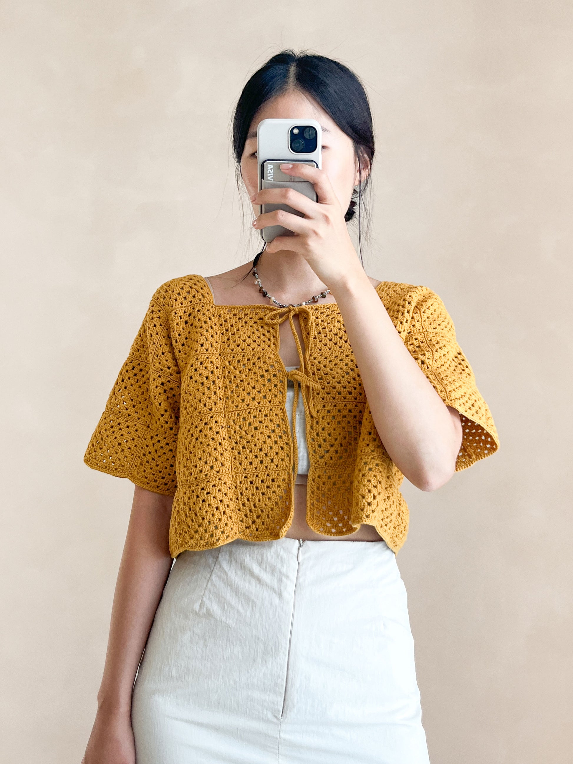 사각형 모티브를 조각조각 연결해 만드는 코바늘 가디건입니다. 고슬고슬하고 먼지 없는 베지터블로 떠서 세탁 및 관리가 편합니다. 여름에는 단독으로 시원하게 입기 좋고, 간절기에는 긴팔 이너를 매치해서 입으실 수 있습니다. 가슴 둘레를 여유있게 입어야 불편하지 않은 디자인이기 때문에 15-20cm 정도 여유를 두고 사이즈를 선택해주세요. 전체 동영상 강의가 제공되며 모티브 크기로 사이즈를 조절할 수 있고, 앞섶을 여미는 리본도 원하는 위치에 달아줄 수 있습니다. 작품 난이도는 쉬운 편이지만 완성까지 시간이 오래 소요될 수 있습니다.