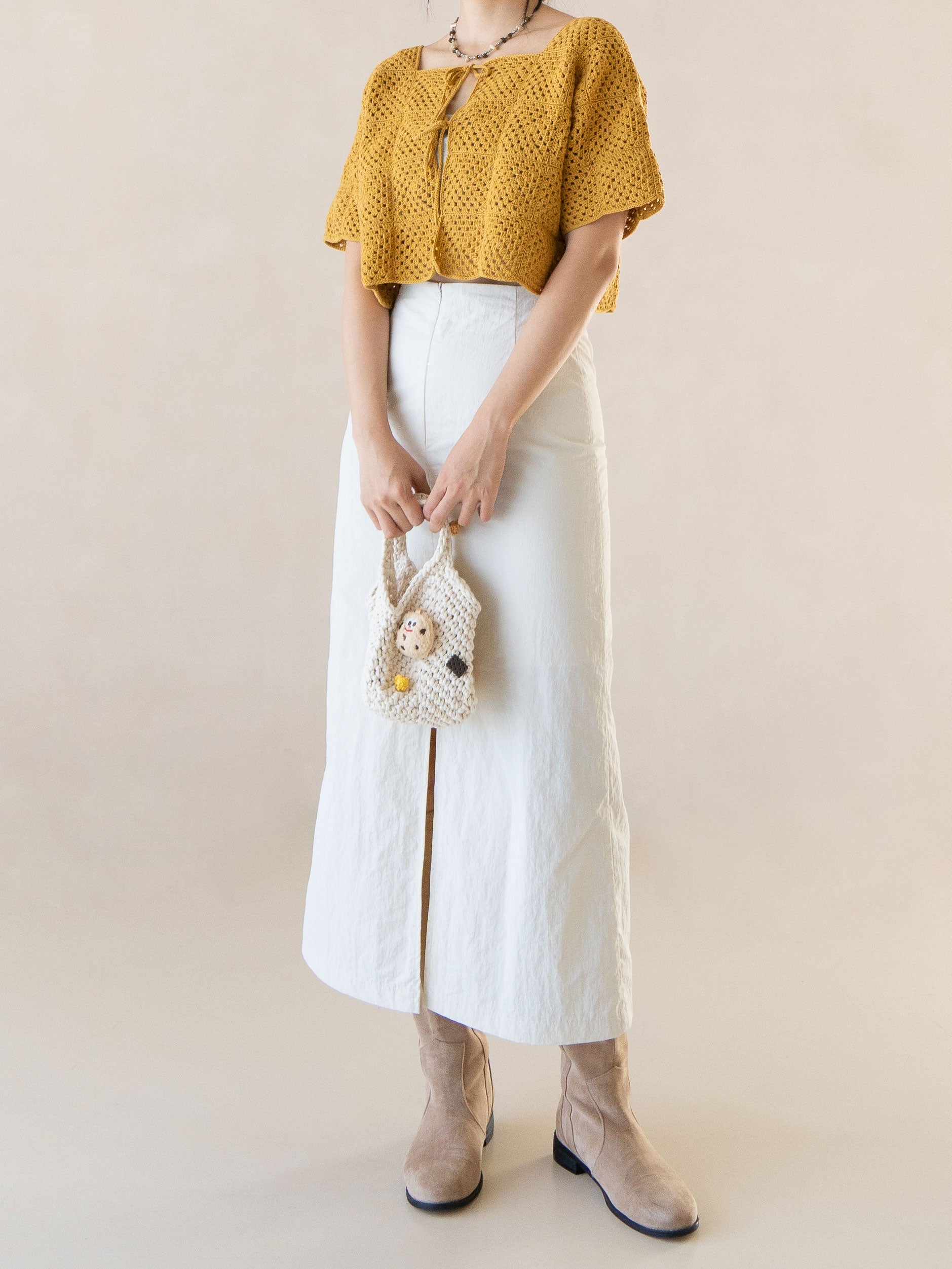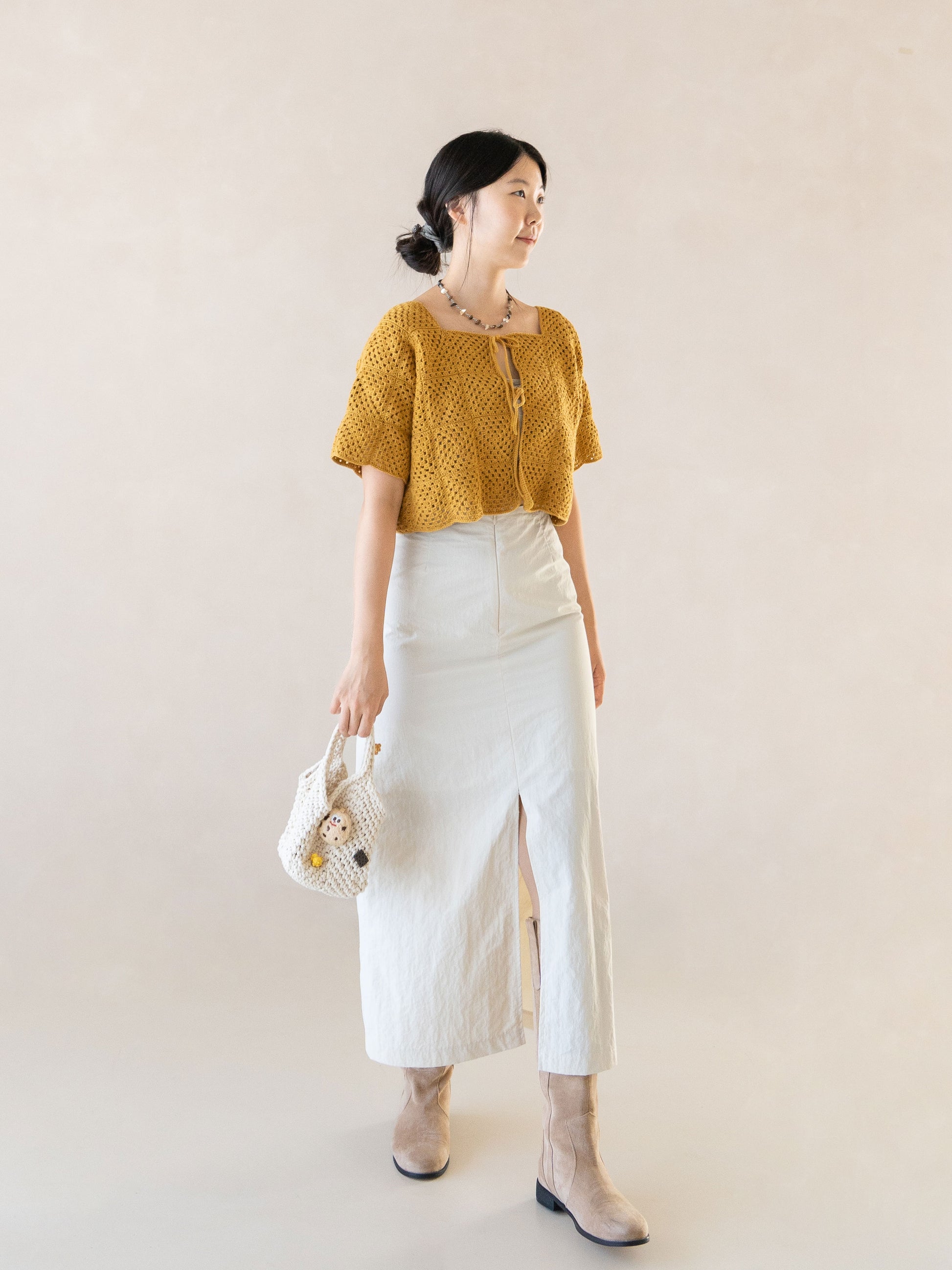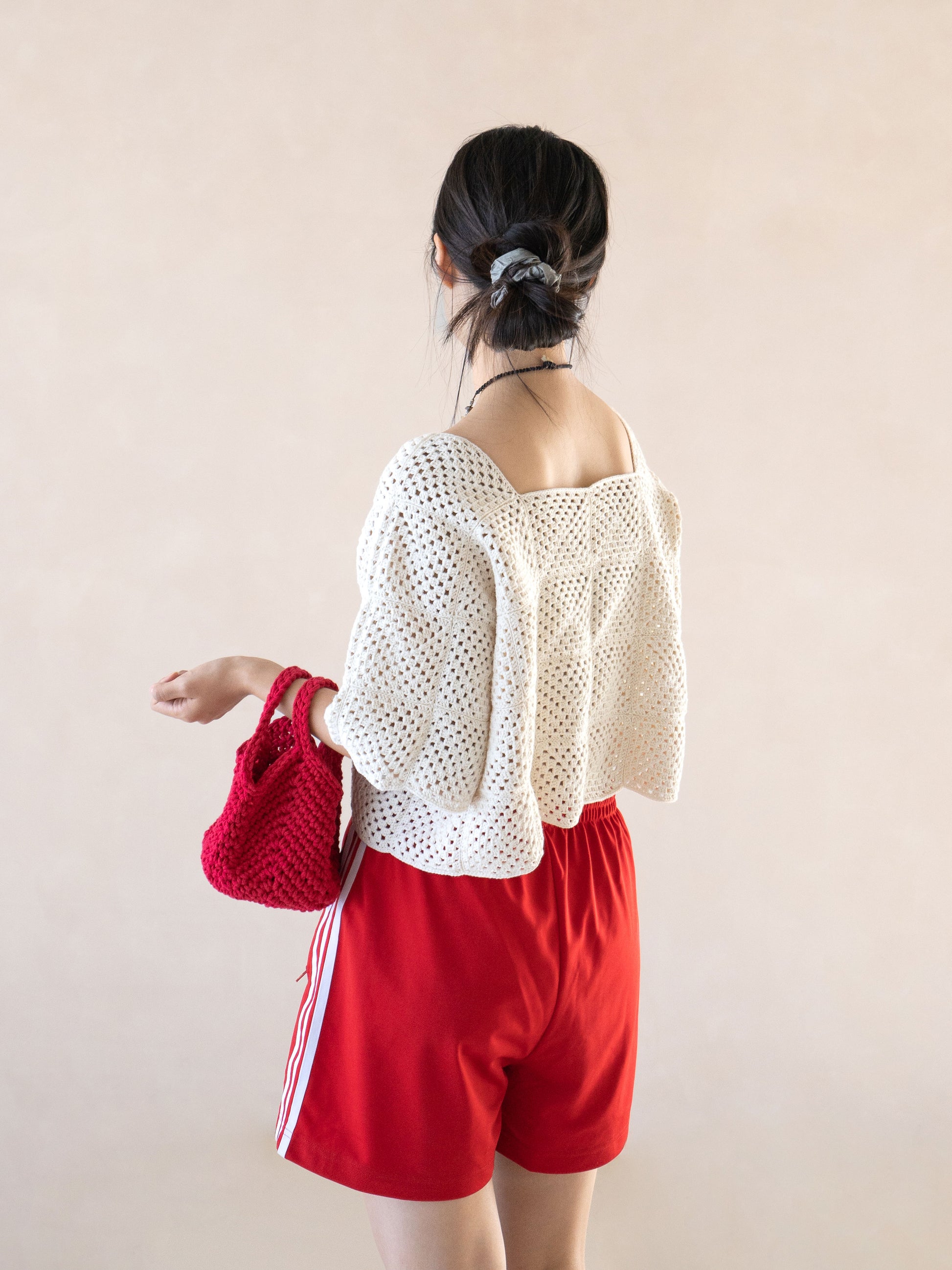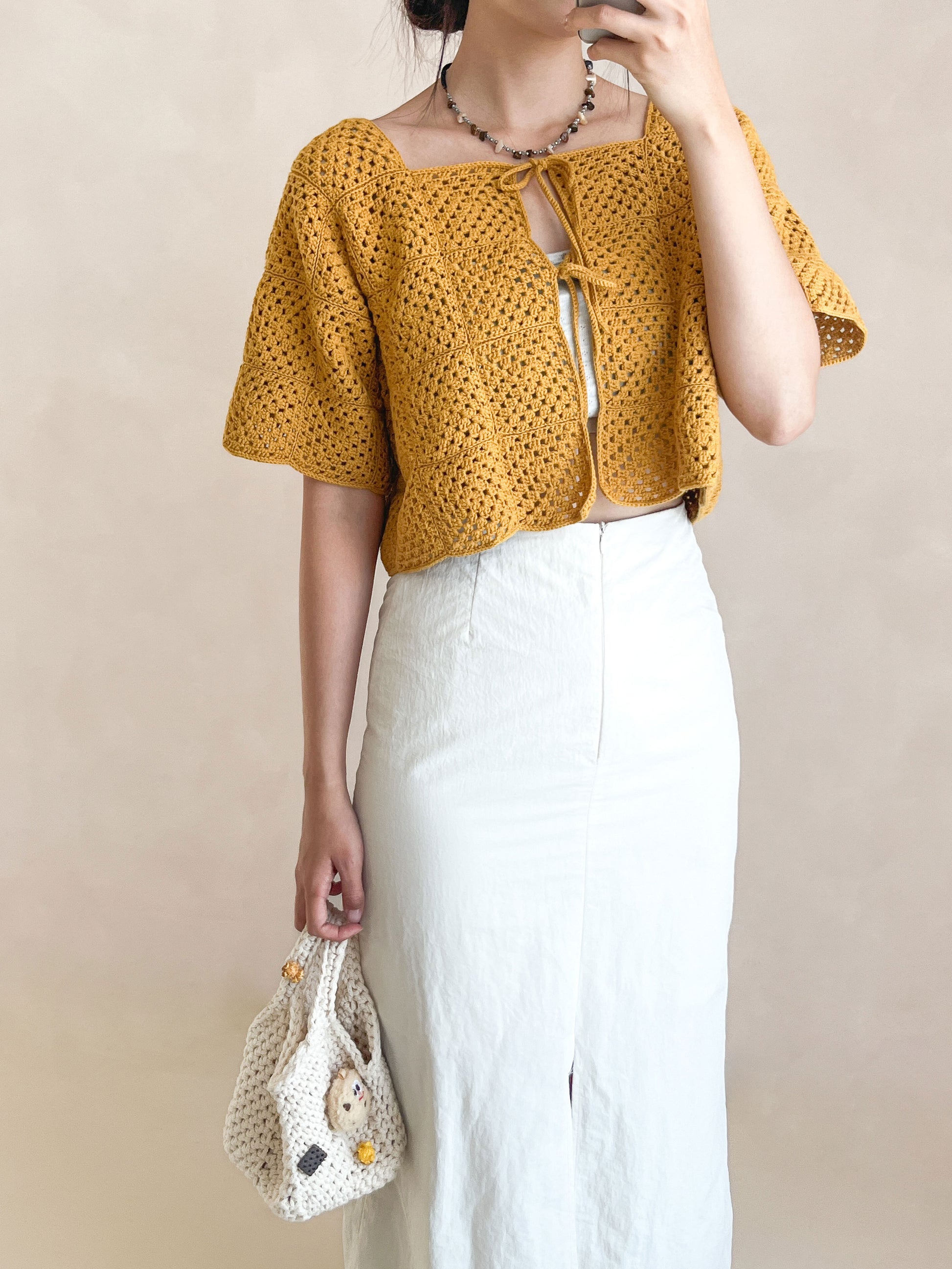 사각형 모티브를 조각조각 연결해 만드는 코바늘 가디건입니다. 고슬고슬하고 먼지 없는 베지터블로 떠서 세탁 및 관리가 편합니다. 여름에는 단독으로 시원하게 입기 좋고, 간절기에는 긴팔 이너를 매치해서 입으실 수 있습니다. 가슴 둘레를 여유있게 입어야 불편하지 않은 디자인이기 때문에 15-20cm 정도 여유를 두고 사이즈를 선택해주세요. 전체 동영상 강의가 제공되며 모티브 크기로 사이즈를 조절할 수 있고, 앞섶을 여미는 리본도 원하는 위치에 달아줄 수 있습니다. 작품 난이도는 쉬운 편이지만 완성까지 시간이 오래 소요될 수 있습니다.