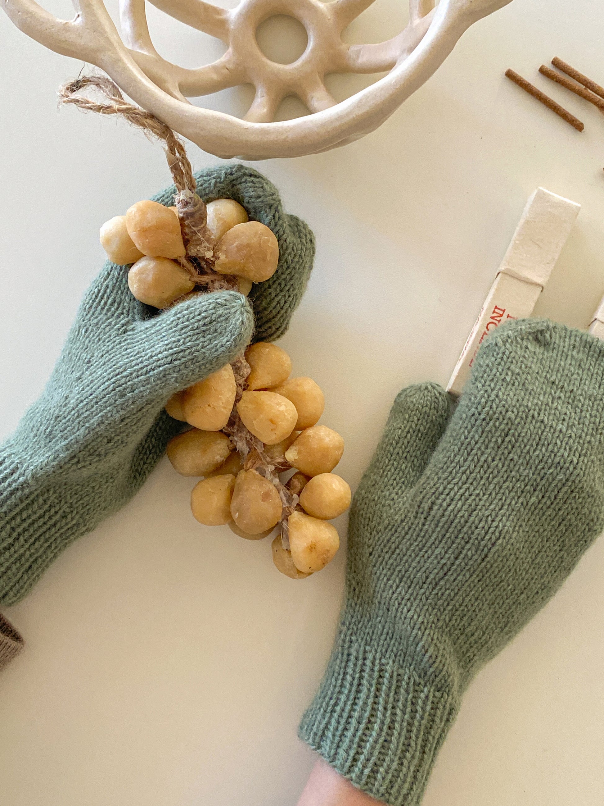 캐시미어 100% 실 솔로캐시미어로 뜨는 기본 손모아 장갑입니다. 난이도는 크게 어렵지 않으며, 양말뜨기보다 쉬운 난이도입니다. 전체 매직루프로 뜨게되며 장갑 끝 부분은 kitchener stitch로 깔끔하게 마무리합니다. 2볼로 한 켤레를 뜨고 실이 넉넉하게 남기 때문에 한 볼을 더 추가 구매하시면 두 켤레까지 완성하실 수 있습니다.