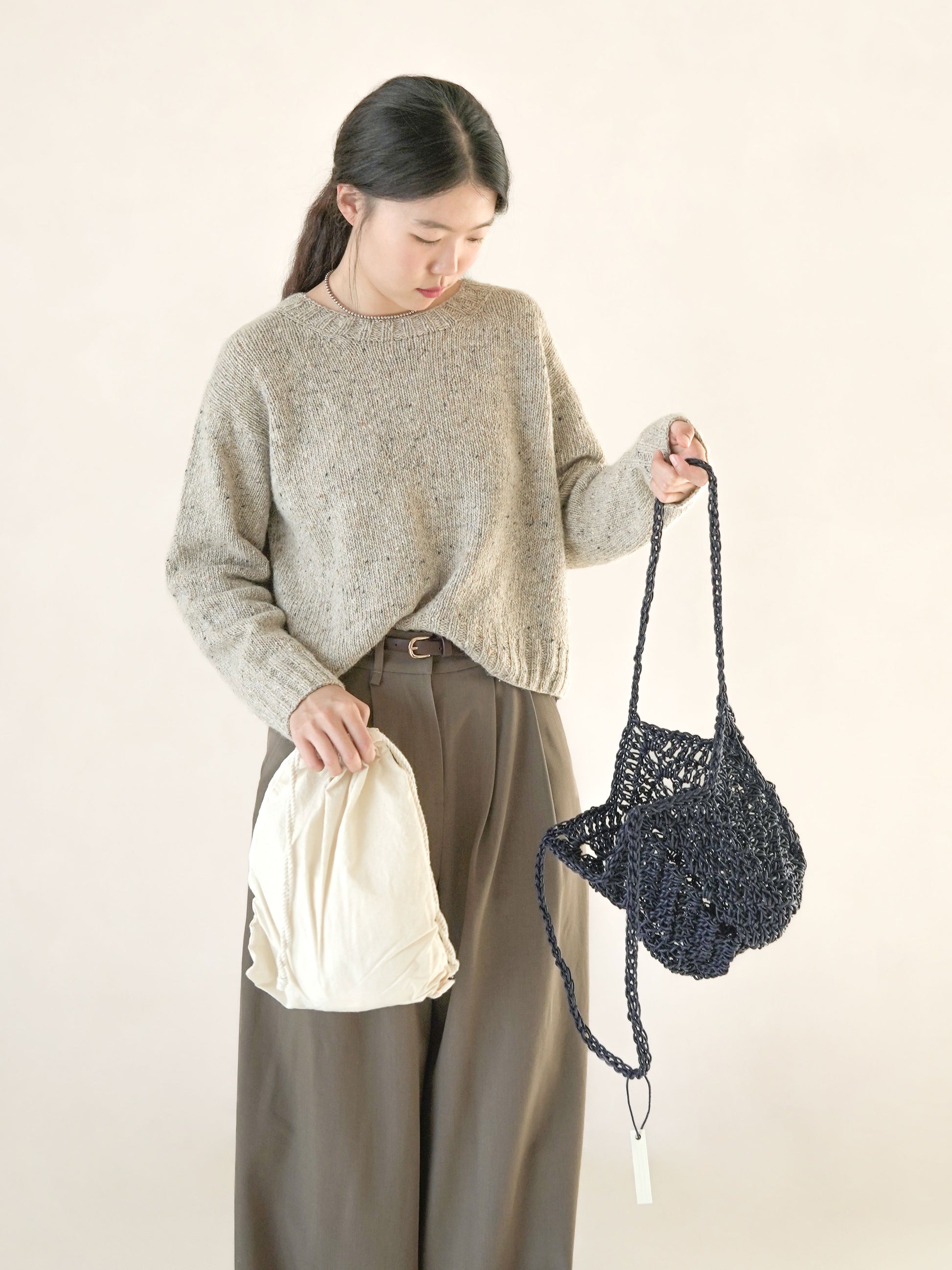 • 사이즈: 작은가방- 가방 바닥 17cm×17cm, 높이 27cm(가방끈 포함 52cm) / 큰가방- 가방 바닥 30cm×30cm, 높이 40cm(가방끈 포함 64cm (※완성치수는 뜨개방법과 솜씨에 따라 사이즈의 오차가 생길 수 있습니다.)