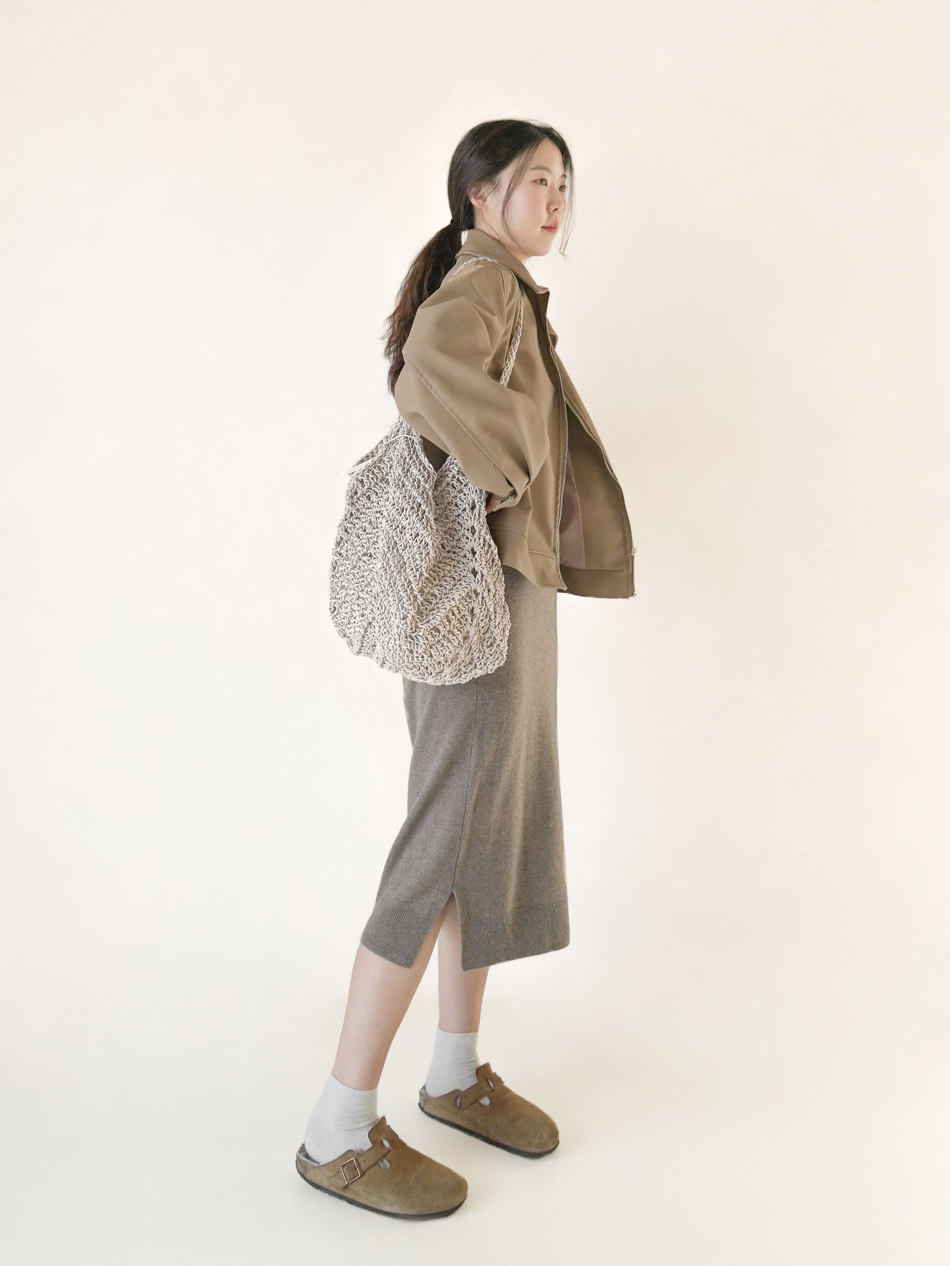 아임낫레더 1겹과 굵은 바늘로 느렁느렁 뜨는 네트백 스타일 그래니 스퀘어백입니다. 그래니 스퀘어 가방답게 자유자재로 사이즈 조절이 가능합니다. 1볼로 완성 시 적당한 미디움 사이즈의 네트백이 완성되며 실을 추가하시면 두볼로 큼직한 가방을 만들어보실 수 있습니다. 그래니 스퀘어 가방 특유의 툭 걸쳤을 때 흐르는 네츄럴한 무드와 아임낫레더 실이 주는 탄탄한 느낌이 어우러져 어느 코디에도 잘 어울립니다. 초보자 분들도 쉽게 만들 수 있는 난이도이며 전체 동영상이 제공됩니다.