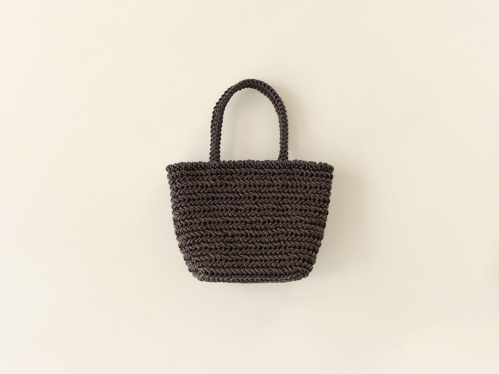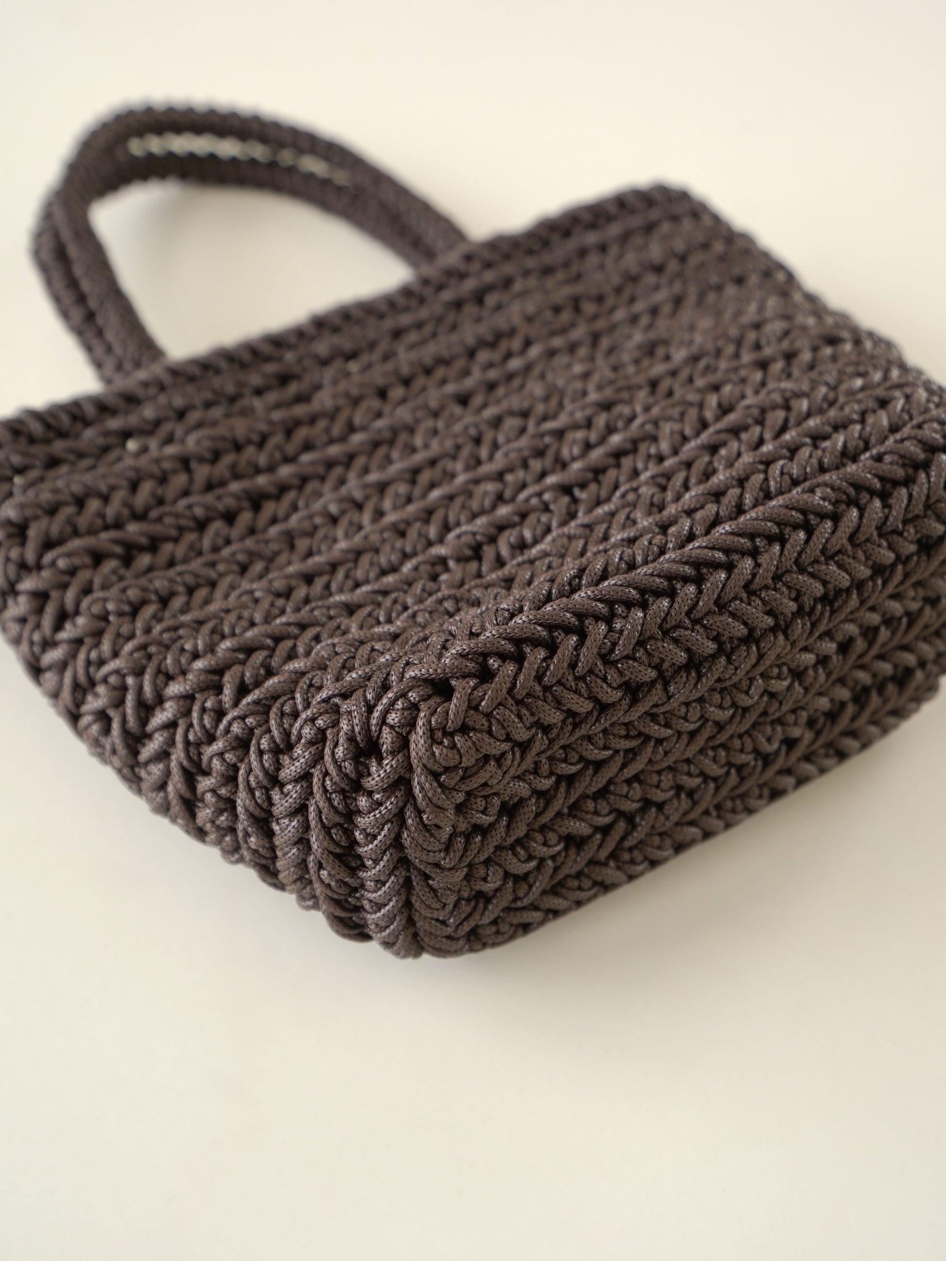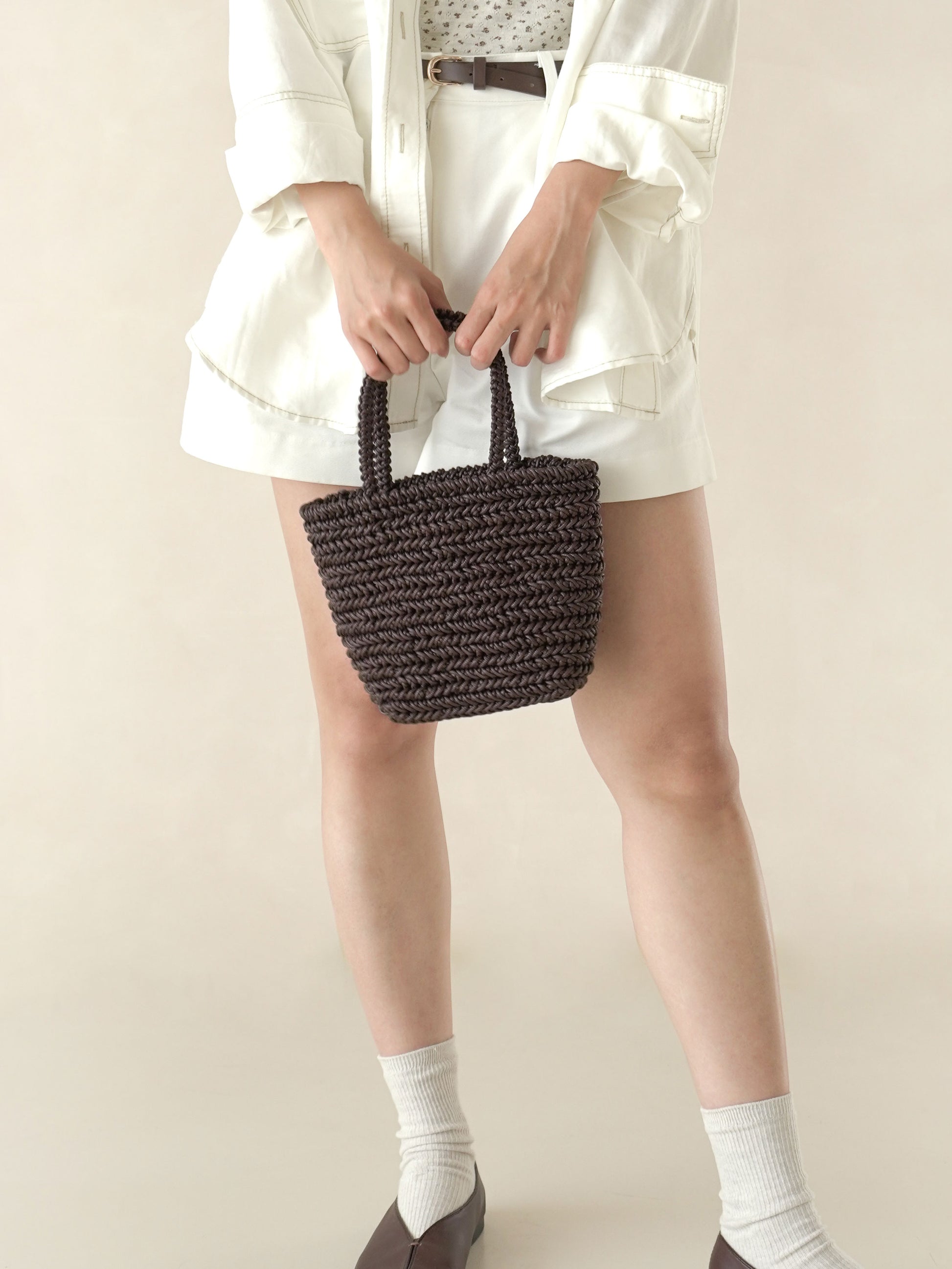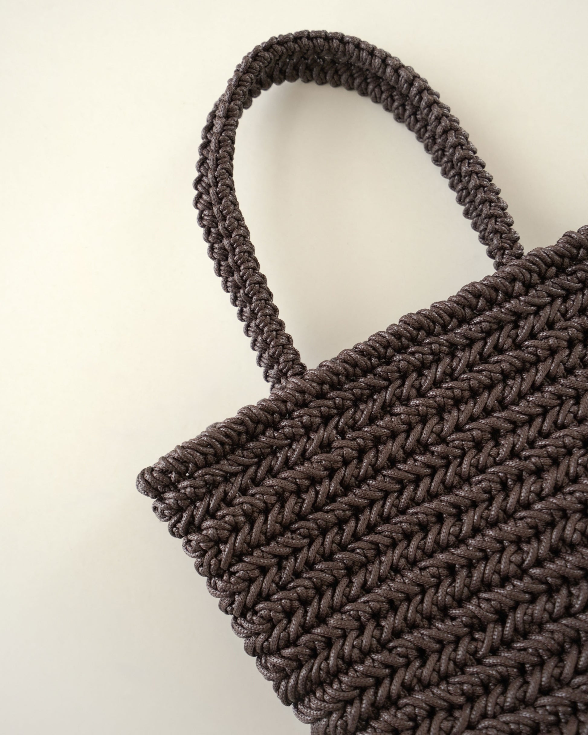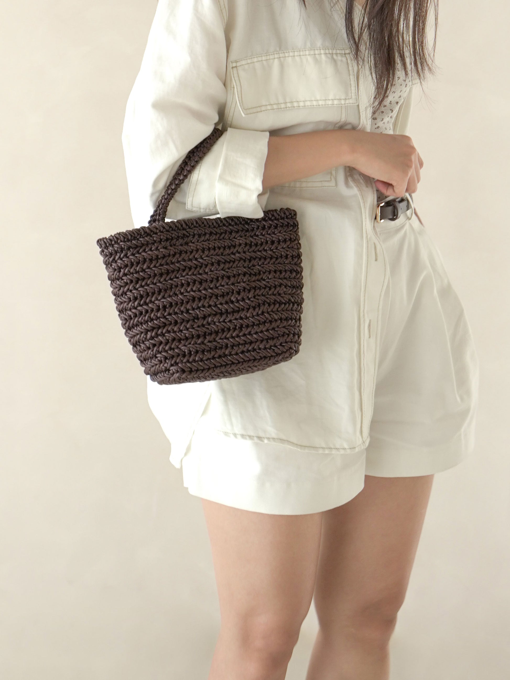 헤링본 스티치를 활용한 미니백입니다. 가방 몸통에서 늘림을 주어 위로 갈수록 살짝 퍼지는 디자인으로 미니백이지만 수납력이 좋습니다. 가방 마무리에서는 진행방향을 바꾸지 않으면서 되돌아 짧은뜨기와 비슷한 느낌을 낼 수 있는 방법을 영상을 통해 쉽게 배우실 수 있습니다.