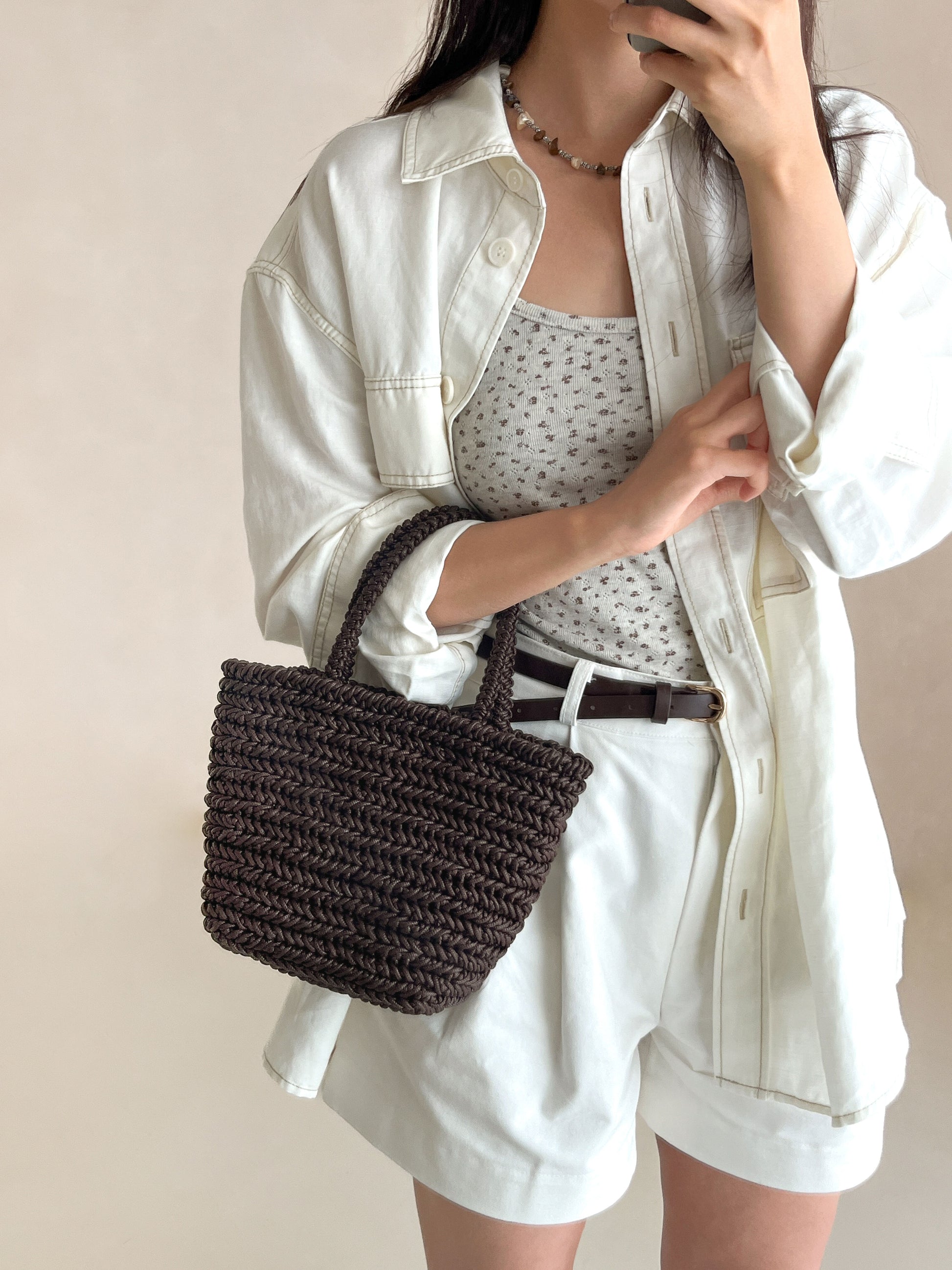 • 사이즈: 가방 바닥 15cm × 7cm / 높이 18cm(손잡이 제외) (※완성치수는 뜨개방법과 솜씨에 따라 사이즈의 오차가 생길 수 있습니다.)