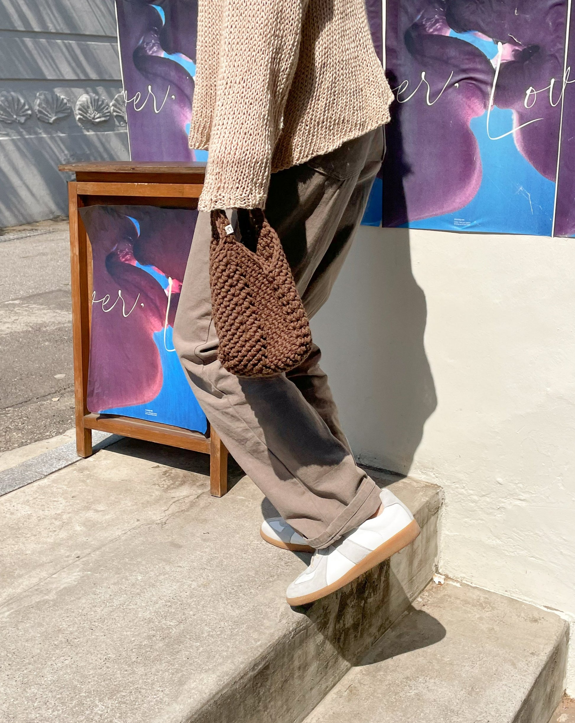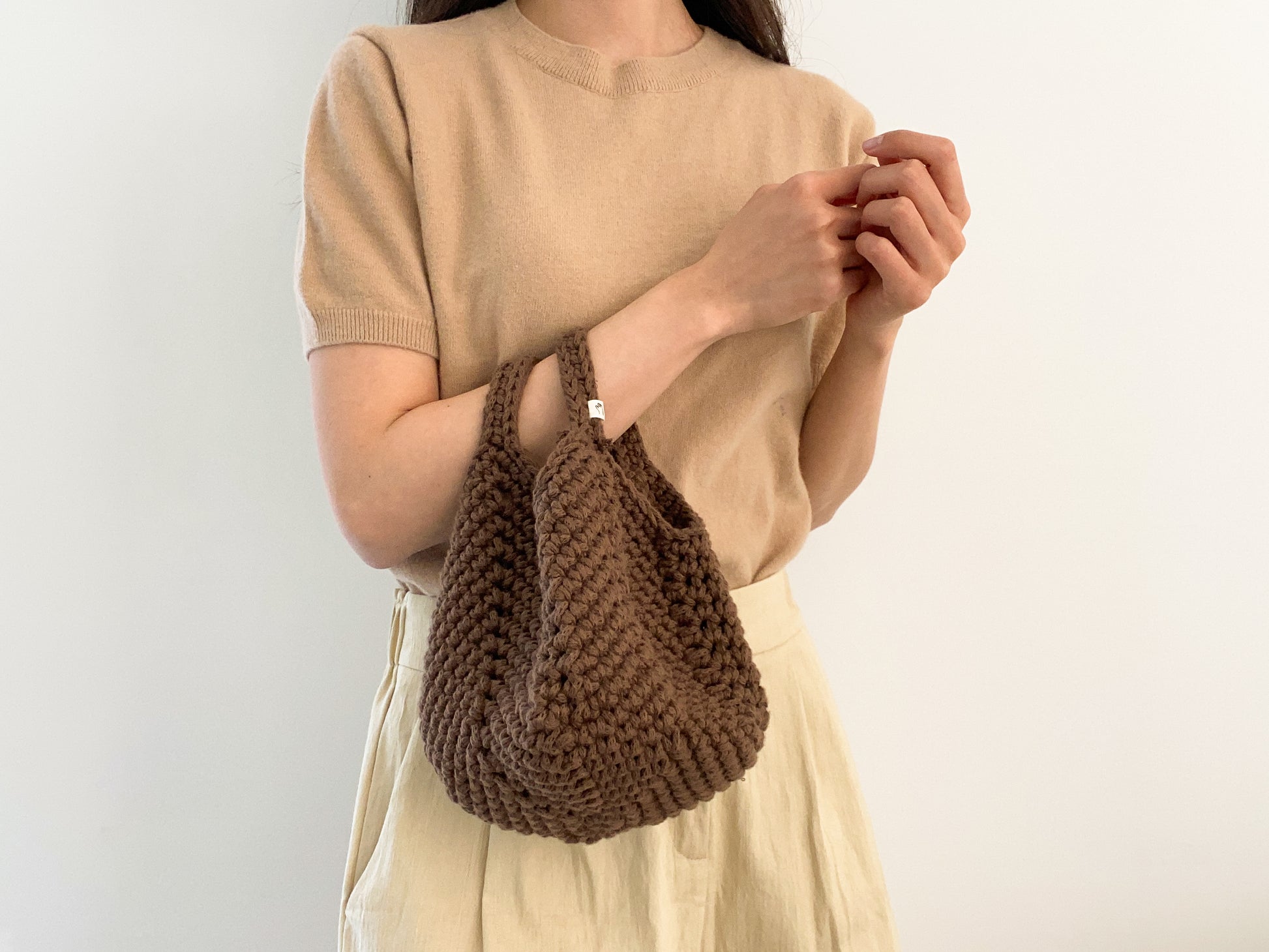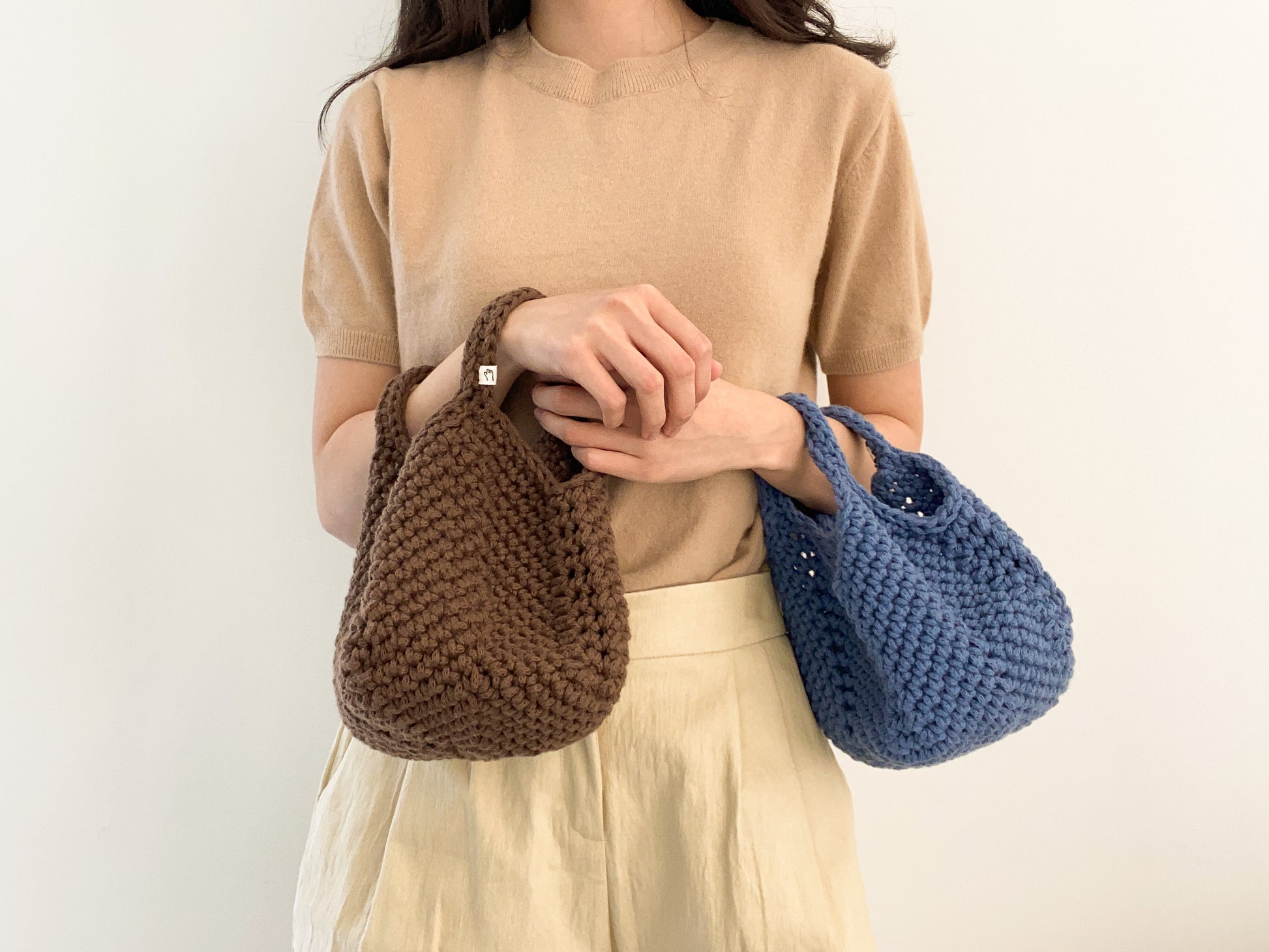 초보자가 뜨기 좋은 굵은 실 코튼10, 한볼로 쉽게 뜨는 코바늘 그래니 스퀘어 네트백입니다. 초보자분들이 헷갈릴 수 있는 그래니 스퀘어 형태를 도안을 보며 동영상과 함께 차근차근 떠나가다보면 그래니 스퀘어 가방의 형태를 쉽게 익히실 수 있답니다. 작은 쪼꼬미 라벨로 심플한 포인트를 줘서 데일리로 매치하기 좋은 아이템입니다.