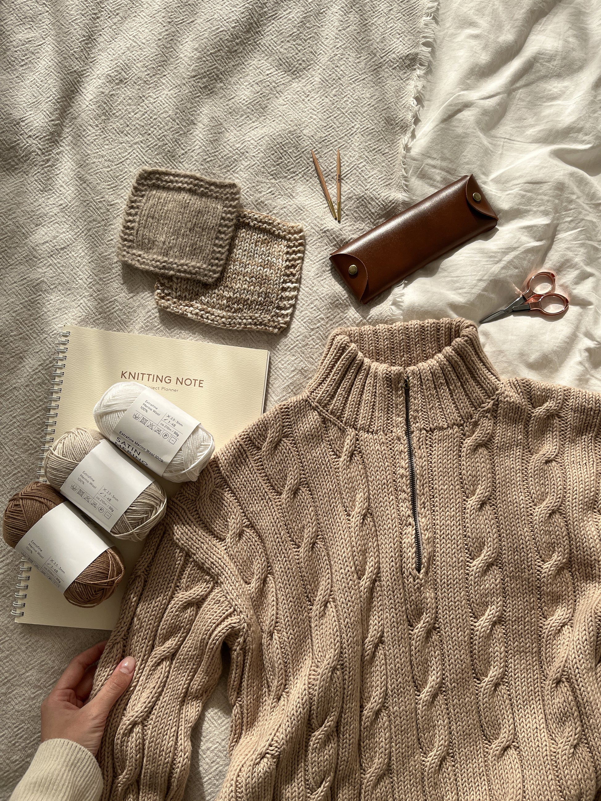 + 작품색상: 패션아란 0438 아일레이 색상, 새틴 메리노울 플러스 05 라이트 브라운