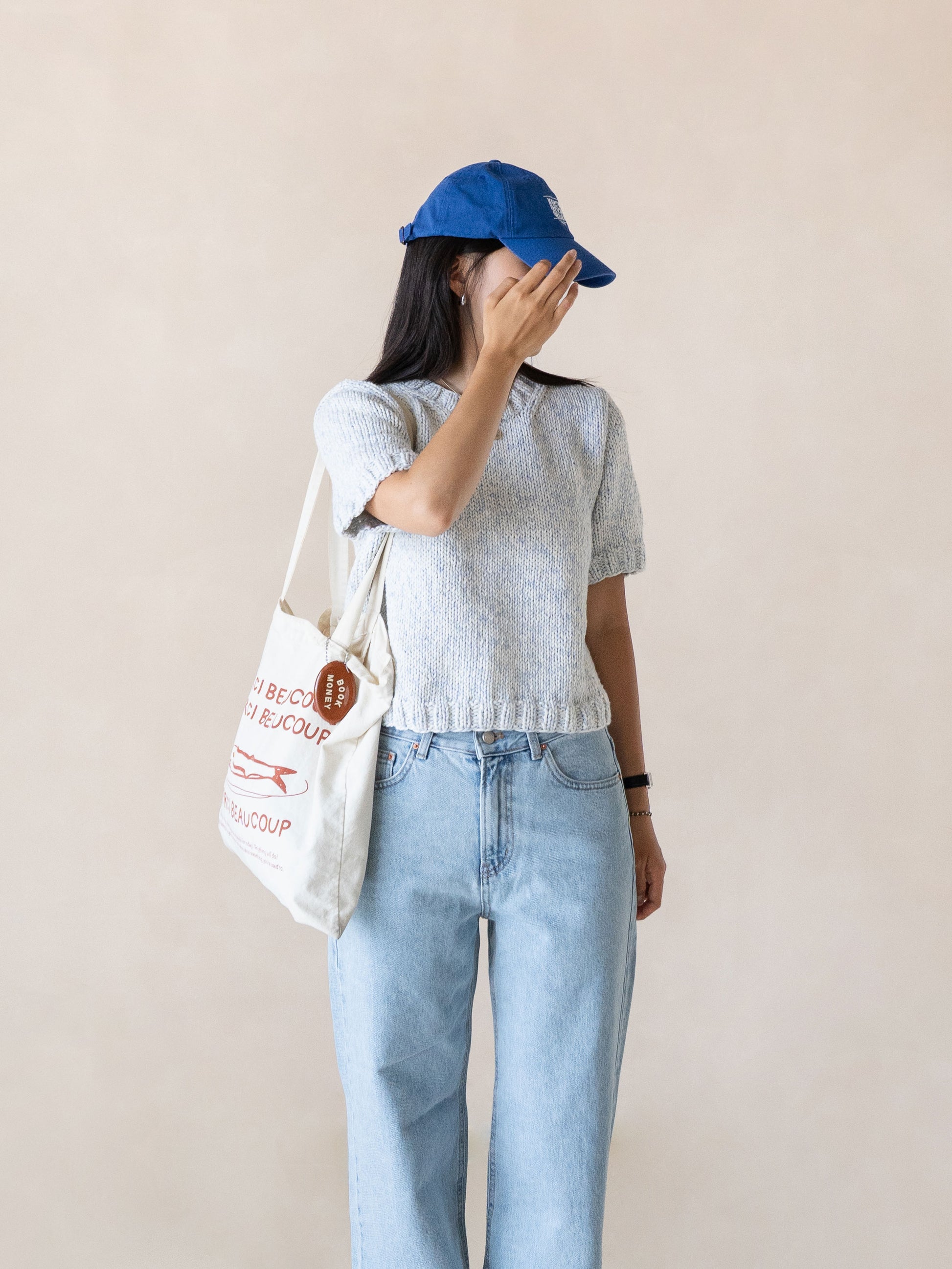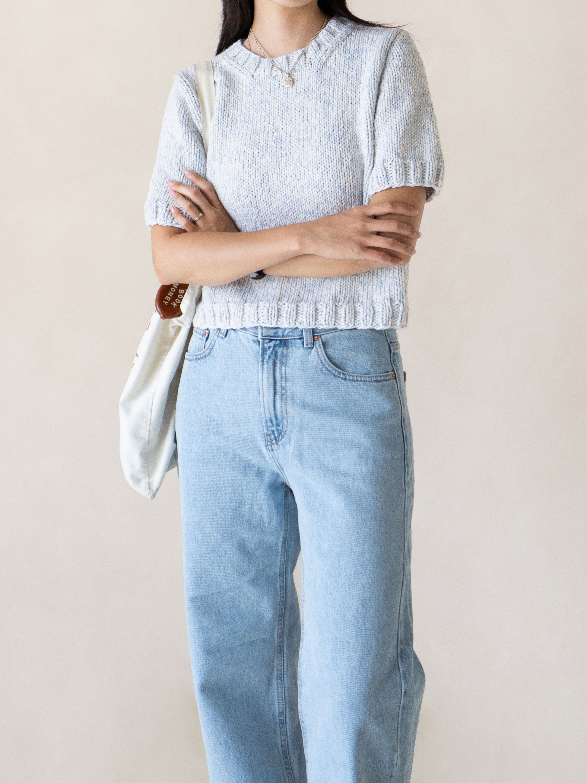 This is the same design as the Butter6 Bottom-Up Basic Short-Sleeve Sweater but made with a different yarn, now expanded to 7 sizes (XS–3XL).
