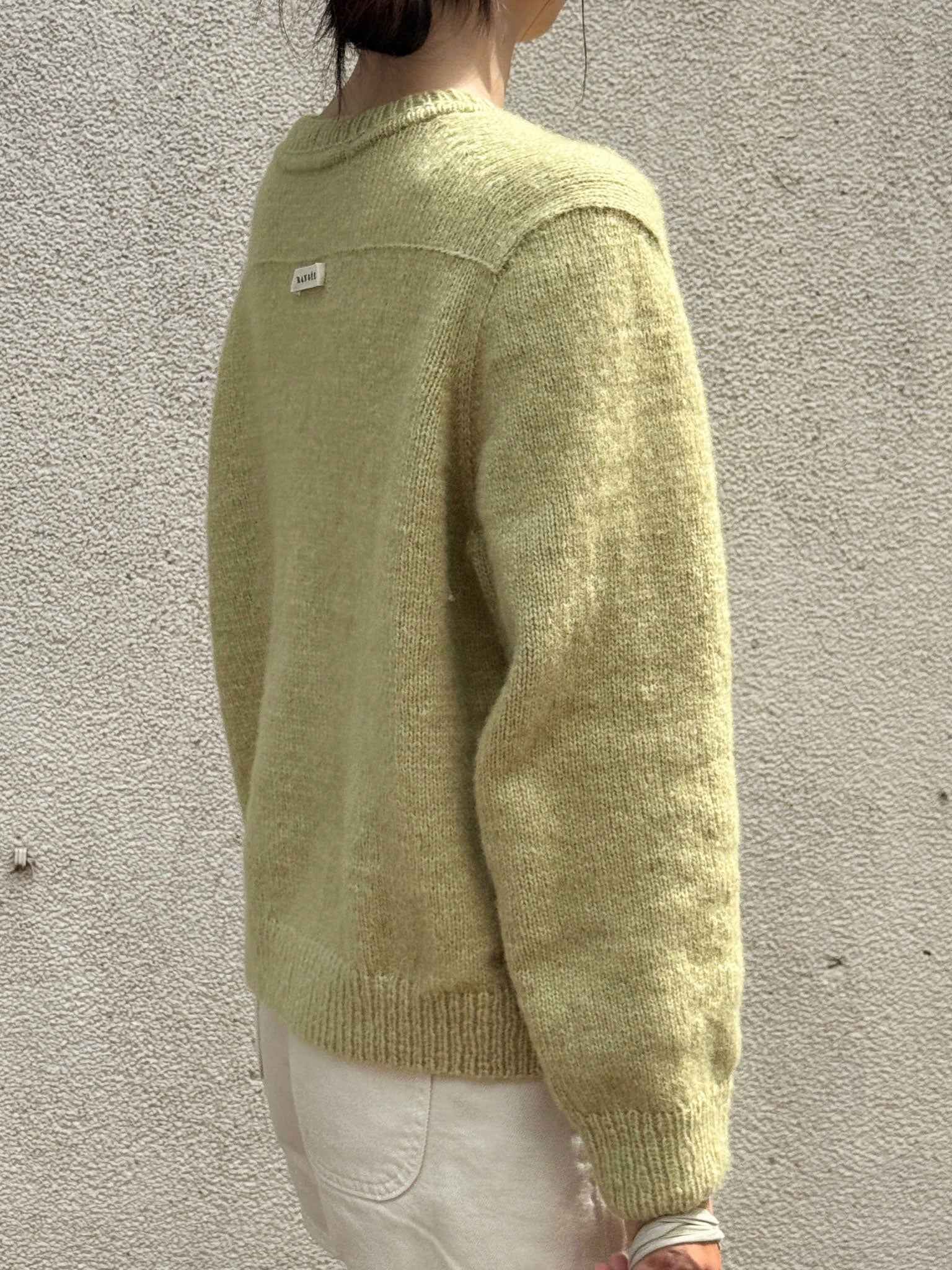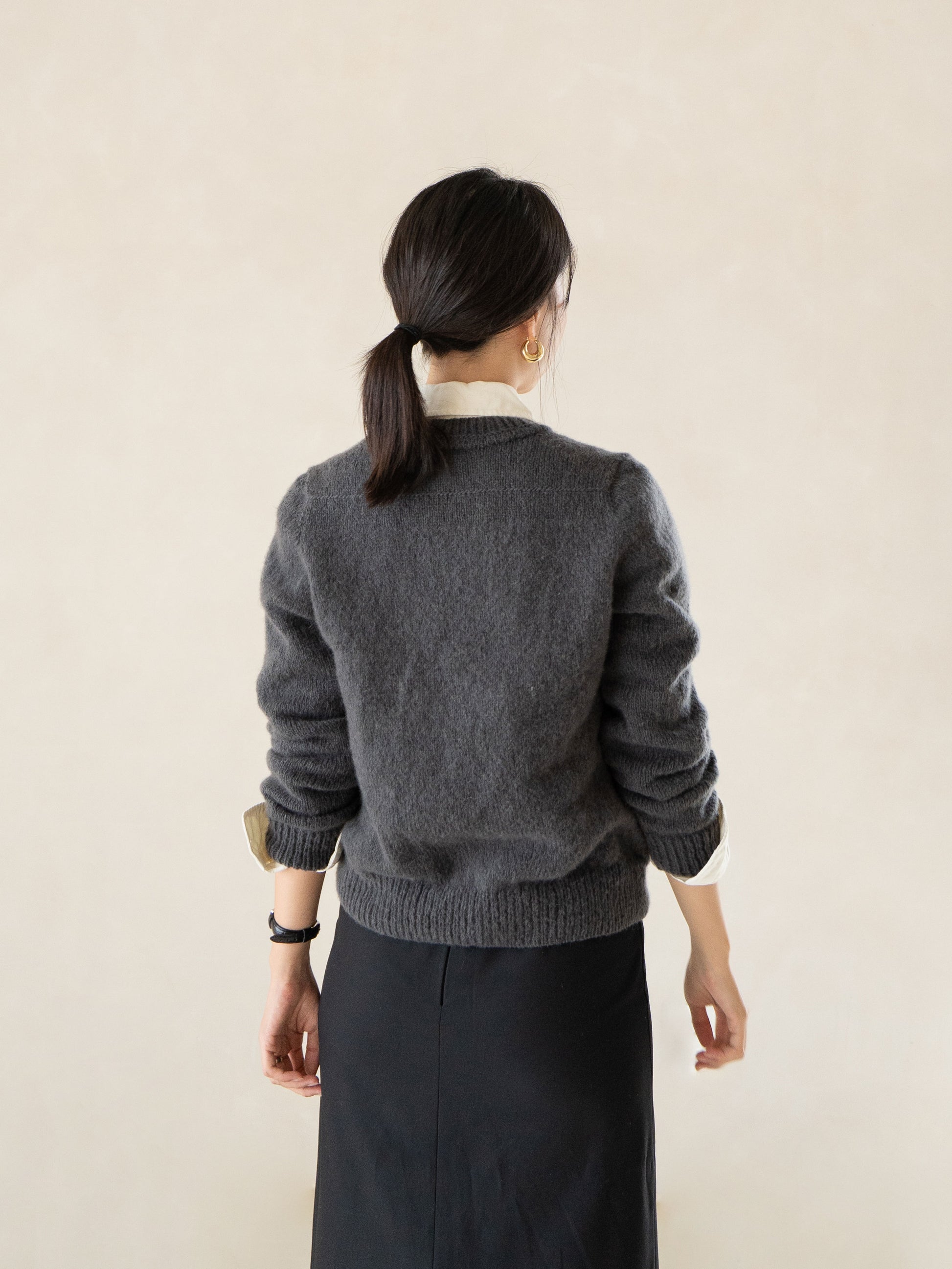 로우키 가디건은 뒷판 상단부터 시작해서 뒷고대 파임과 어깨를 각각 만들어주고 어깨 선을 따라 코를 주워 소매를 같이 만들어나가는 simultaneous 방식의 탑다운 가디건입니다. 뒷판에서 바텀업 방식으로 시작하여 뒷고대를 만들어주기때문에 탑다운에서는 쉬운 방식으로 구현하기 어려운 동그란 뒷고대를 만들어보실 수 있으며 뒷판 코잡은 부분에서 코를 줍기 때문에 뒷판에 가로줄이 디자인적 요소로 들어가 있는 것이 특징입니다. 따로 소매 코를 줍지 않고 함께 떠내려갈 수 있어서 코줍는 과정을 최소화하고, 어깨 부분을 구성할 때 실 끊기가 한 번만 진행되어 번거로움을 줄였습니다.