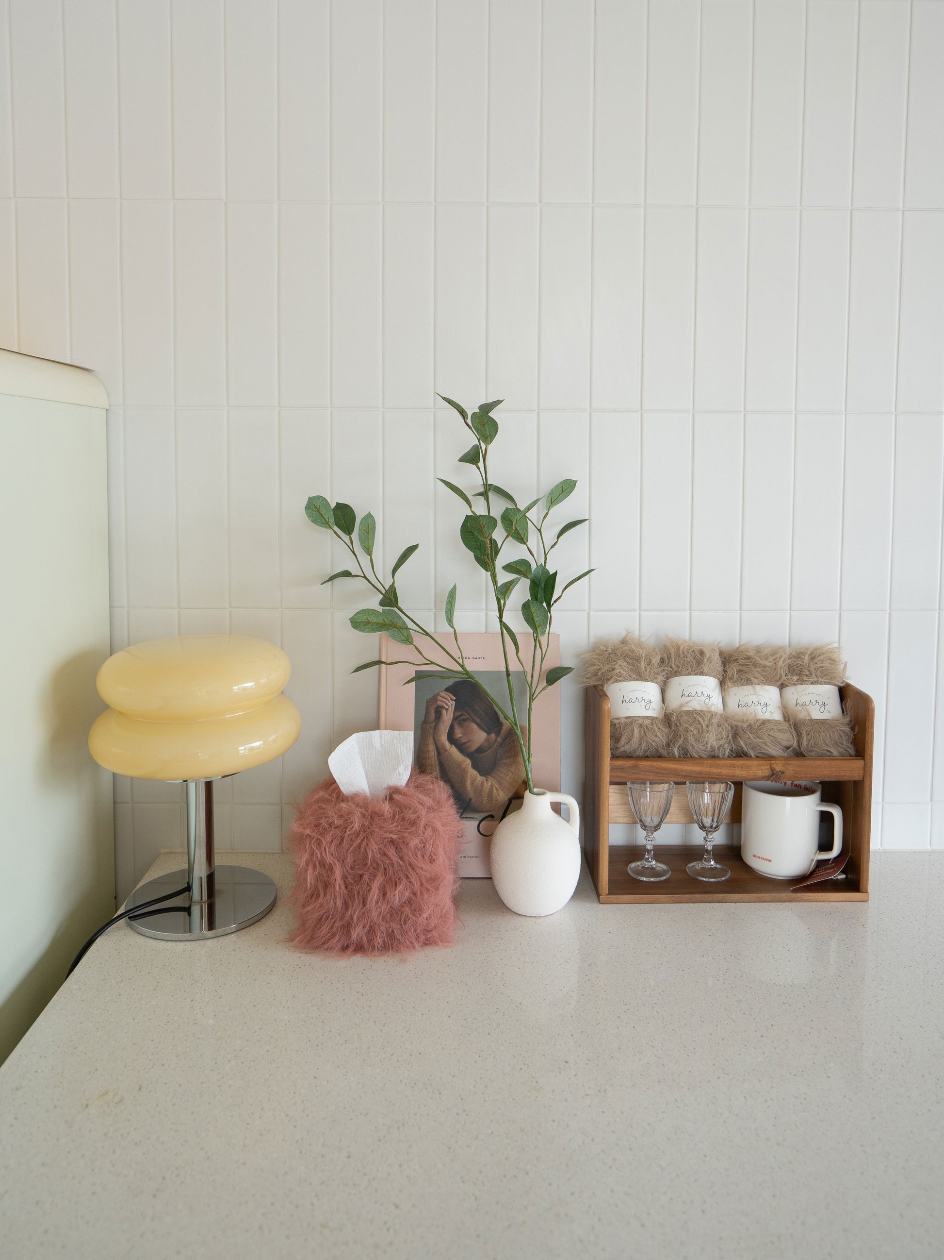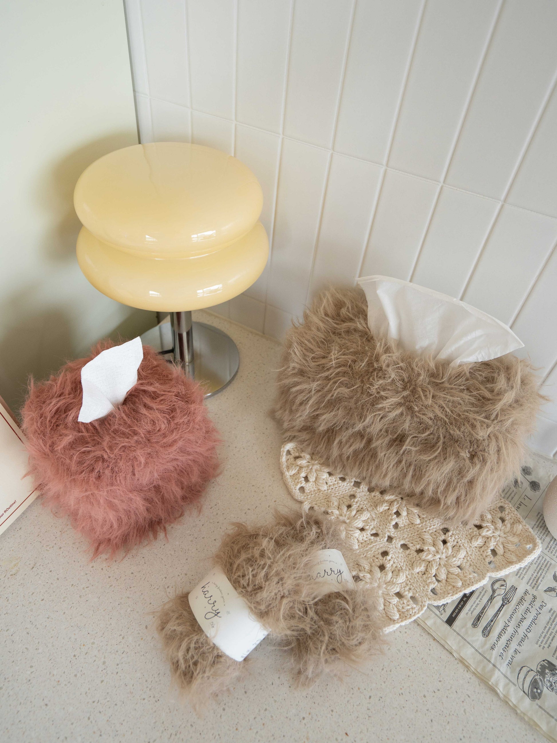 This tissue case is made with fluffy Harry yarn. Although the stitches aren’t very visible, it’s worked with knitting needles, making it quick and easy for beginners to create, with a high-quality result that’s perfect for gifting. The full video tutorial covers flat knitting, circular knitting, picking up and binding off stitches, and the wrapped stitch technique, allowing you to learn multiple techniques at an easy level. This package is highly recommended for beginners who want to level up their skills in one project. Designed to fit standard rectangular and square tissue sizes, one package lets you make one rectangular and one square tissue case.