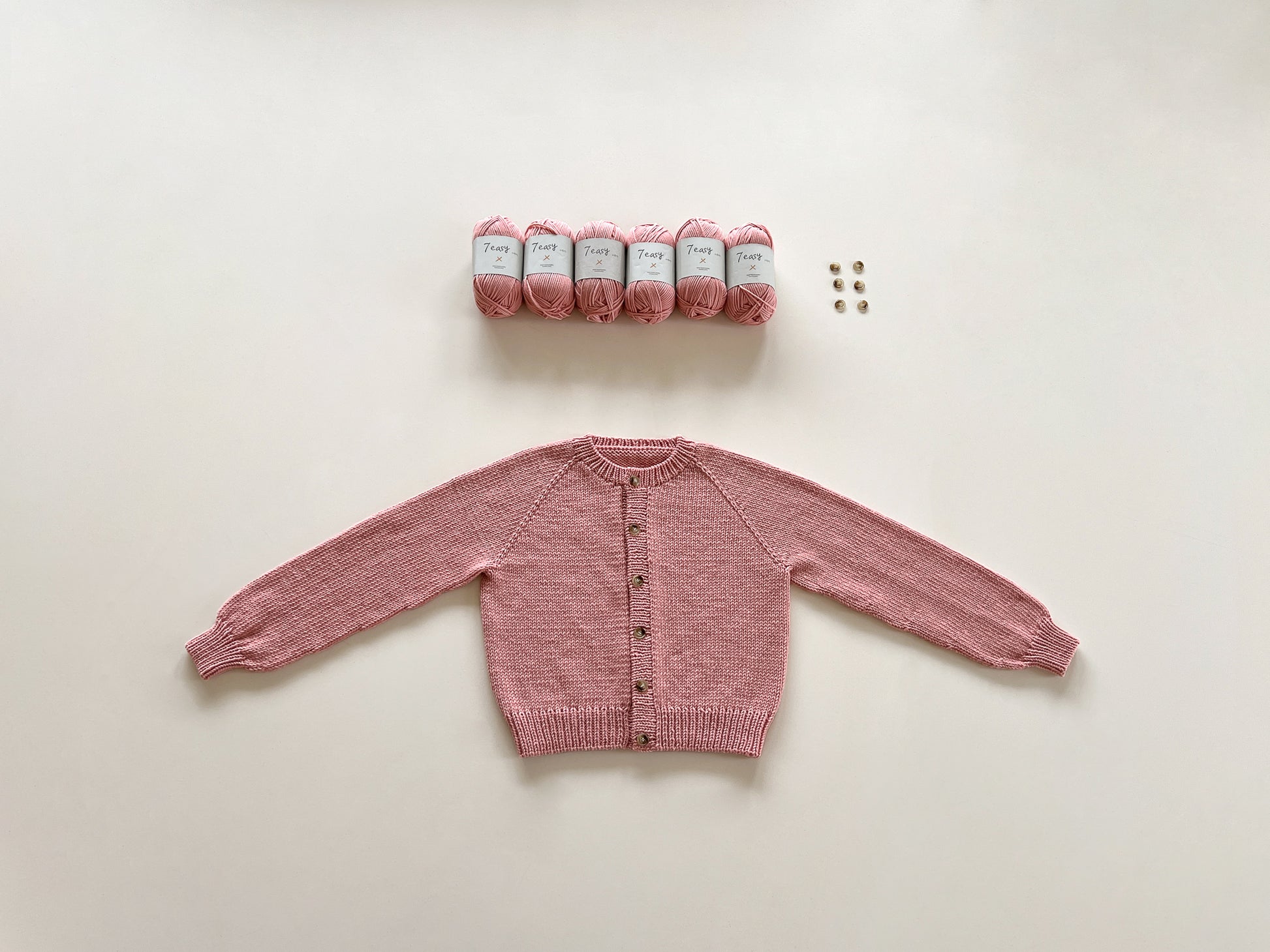 • Materials: Seven Easy (1 ball=80 g/130 m≒2.8 oz/142.2 yd) 6 (6) 7 (8) 9 balls,Latte Button 18 mm 6 pcs